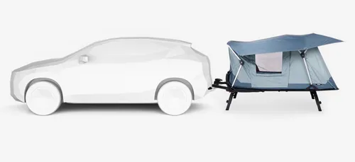 Het grote voordeel van deze slimme uitvinding is dat de tent achter de auto hangt in plaats van op het dak. Hierdoor beïnvloedt hij het rijgedrag van de auto een stuk minder en scheelt het ook in energieverbruik. Voor