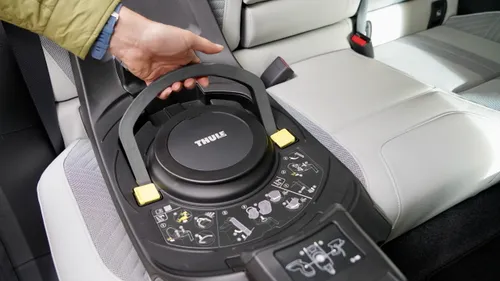 Wie eerst even moet uitzoeken hoe het zit met de Maxi-Cosi is een minuut langer bezig. Hiermee klik je een baby-autostoel zoals een Maxi-Cosi Pebble of in ons geval de Thule Alfi vast aan de achterbank. Dit zorgt voor extra stabiliteit en veiligheid tijdens het rijden.