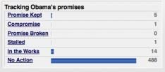 PolitiFact.com gaat de ongeveer 500 beloften die Barack Obama tijdens de campagne heeft gedaan in kaart brengen en de voortgang daarvan meten mbv de Obameter.
