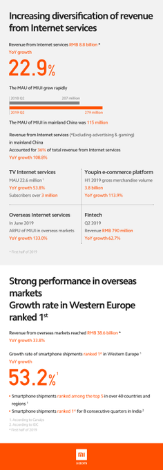 Chinese telefoonproducenten Vivo en Oppo zitten ook niet stil. Beide bedrijven investeerden rijkelijk in hun marketing gedurende het recente cricketseizoen in India. Vivo bezat 15,1% van de Indiase markt, een stijging van 12,6% in Q2 2018, terwijl het marktaandeel van Oppo in dezelfde periode groeide van 7,6% naar 9,7%. Het marktaandeel van Realme, een producent die oude modellen van Xiaomi repliceert, schoot omhoog van 1,2% in Q2 2018, naar 7,7% in G2 2019.